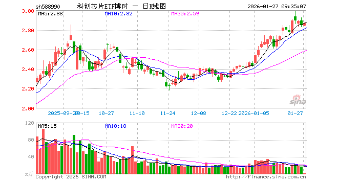 1月27日,科创芯片ETF博时(588990)开盘跌0.07%,报2.843元。科创芯片ETF博时(588990)重仓股方面,中芯国际开盘涨0.07%,海光信息涨0.50%,寒武纪涨0.00%,中微公司涨0.22%,澜起科技跌1.21%,拓荆科技跌0.03%,芯原股份跌0.00%,华虹公司跌0.89%,沪硅产业跌0.09%,东芯股份涨8.07%。